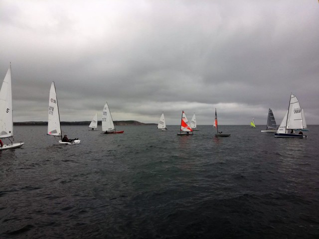 Day one on Saturday under dark windless sky with a bit of mist thrown in only had 1 race and that was after a 1 1/2 hour delay, a large wind shift during the first beat meant those who chosen the right hand side of the course lost out heavily, the race was cut short as the wind dropped off leaving a large portion of the fleet struggling against the tide to finish,