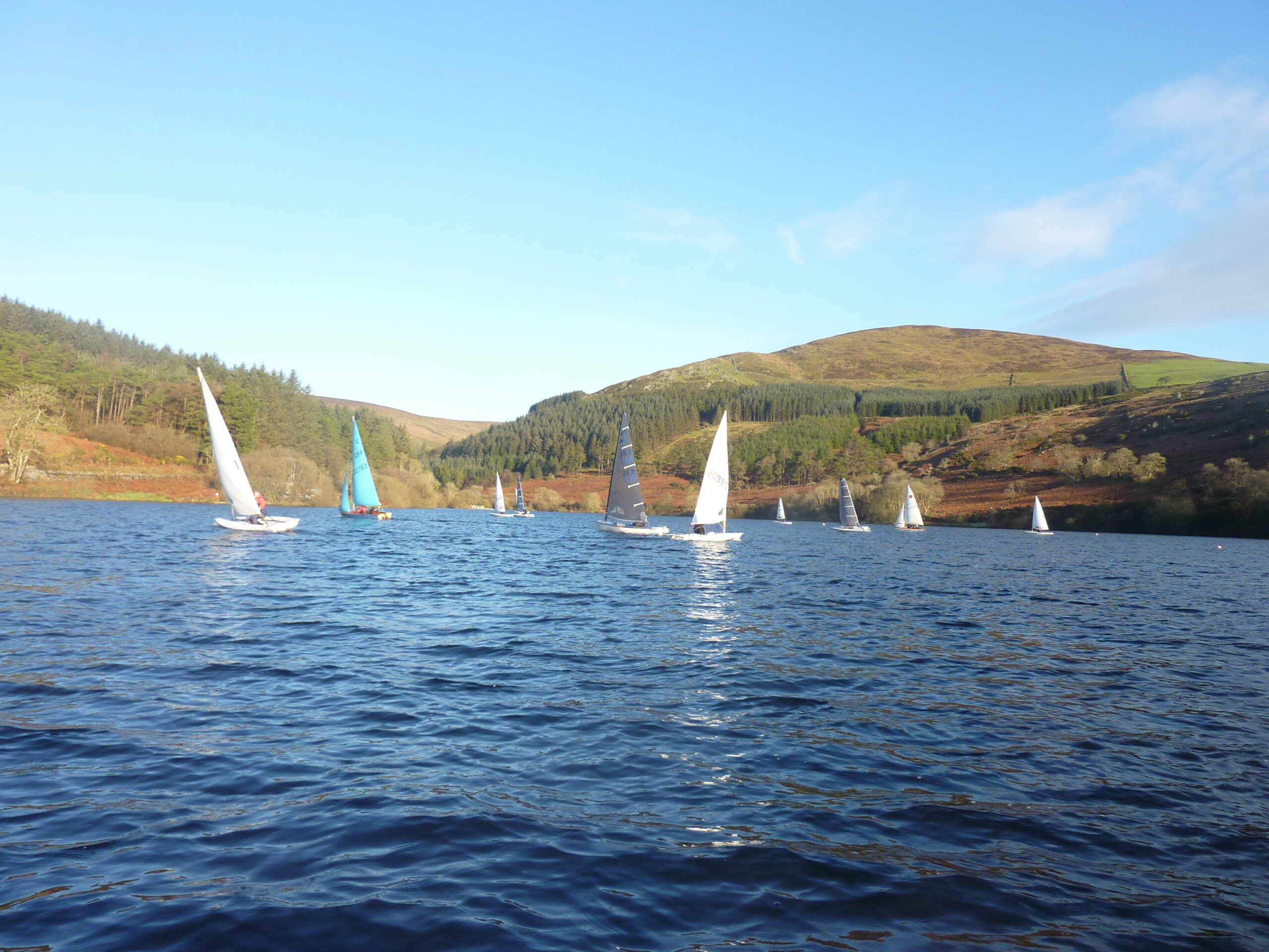 A rare northerly breeze blowing down the West Baldwin valley definitely put the ‘Winter’ into the Watling Streetworks Winter Dinghy Series at the reservoir on Sunday morning. Whilst clearing ice off boats and rigging, the light breeze steadily built as the sunshine came over the hills to give conditions that are about as good as it gets. Gust free and steady breeze with no holes and bright sunshine. Follow this link for the full write-up – Watling Streetworks Winter Series – 6 December 2020