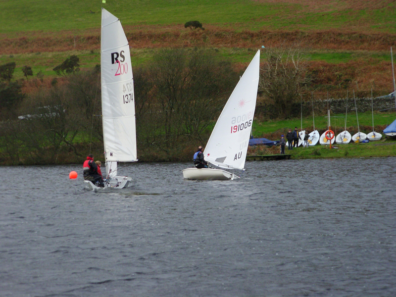The race officer was, with the wind blowing down the valley, able to set a starboard course (clockwise), up the reservoir, across, down and then back up.