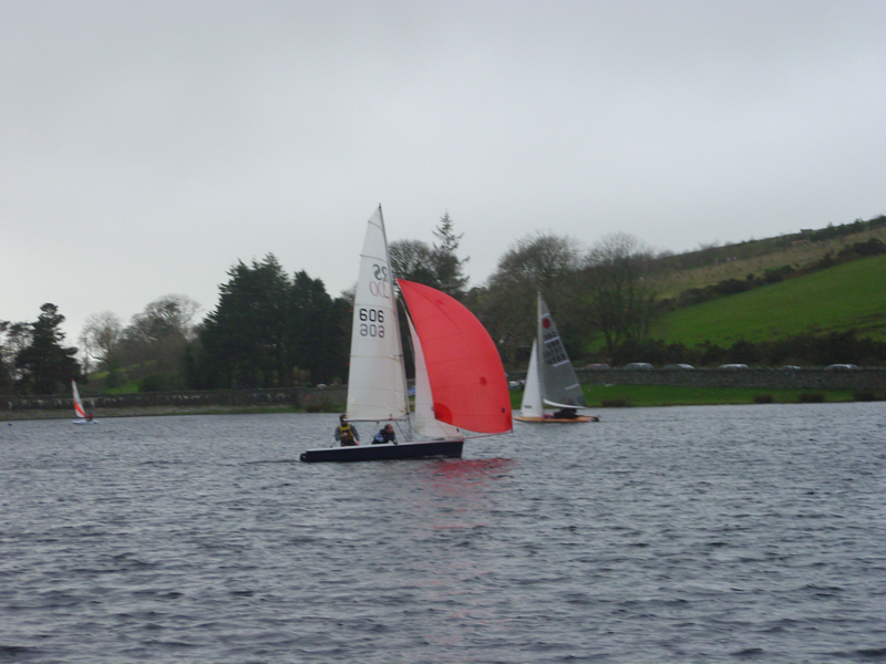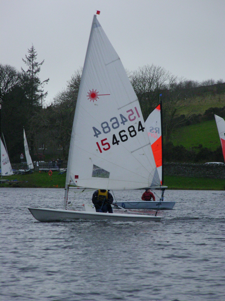 The MS&CC’s January Series at Injebreck continued on Sunday in brilliant sunshine again but this time with a cold and gusty Northerly wind that proved very challenging for all the competitors. The usual gathering at the gate expressed serious doubts as to whether it was fit to go as we observed the black line gusts coursing down the lake albeit with more gentle periods in between. The forecast said it was due to increase and Ronaldsway was already reporting gusts over 20 knots. Sound effects from the trees added to the concerns and it looked like a cancellation was in the offing until Peter and Max Cope pitched up and took the cover off the Laser 2000. A slight increase in the durations of the lulls between gusts together with mutterings from the older attendees about the conditions we used to sail in up here saw a fleet of 6 dinghies set sail heading up the lake towards the start line. Your correspondent had of course prepared the Finn for the fray but was interrupted by Yogi Quayle on the patrol boat requesting a crew who could enter the water if necessary so Colman reluctantly obliged after tying the Finn back down again in the now increasingly fierce gusts. Full report on this link – Watling Streetworks Winter Series – 14 January 2024